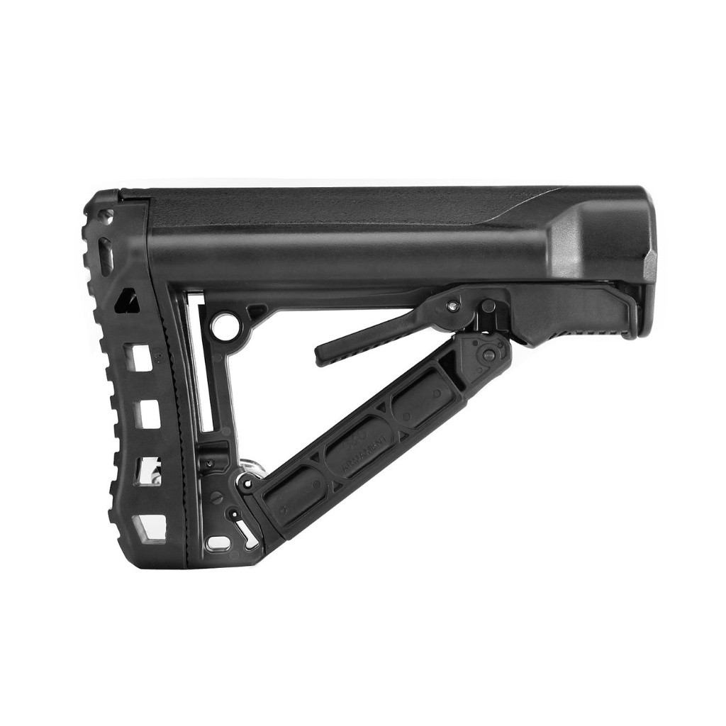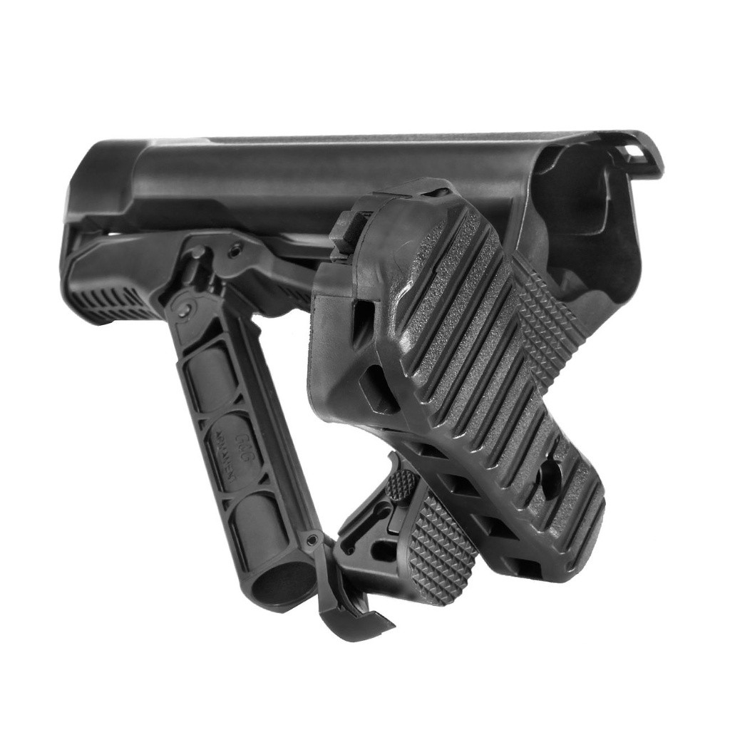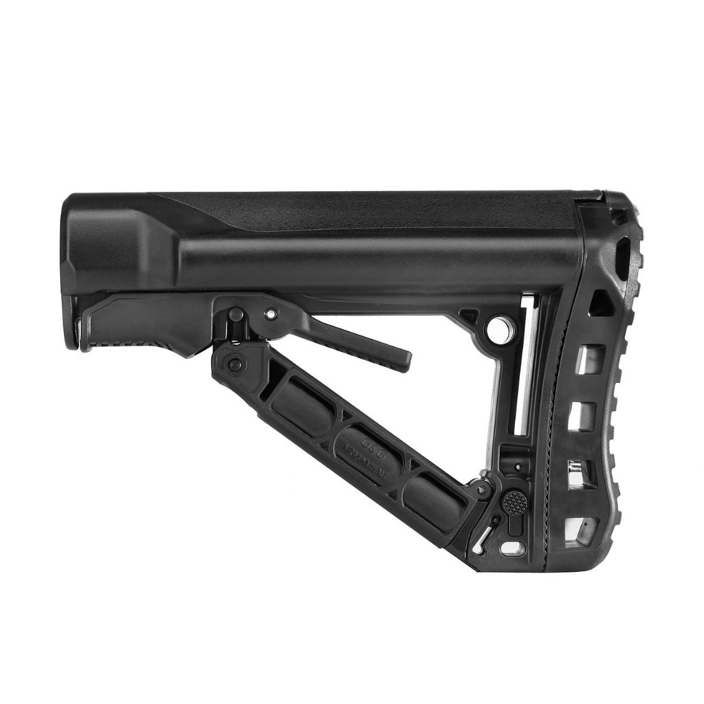 Moderní výsuvná pažba pro elektrické zbraně M4 s promyšleným designem a originálním systémem vysouvání. Jedná se o originální výrobek G&G. Velký úložný prostor na baterie nunchuck. Snadná manipulace a výměna baterie. Má gumovou patku, otvíratelnou schránku na boku. Do této schránky lze uložit například drobné nářadí, baterie pro svítilny (CR123)..apod. Na bocích jsou otvory pro rychloupínací oko na popruh. Tato pažba nabízí možnost nastavení délky v sedmi krocích, ale zároveň poskytuje stabilitu a neměnou pozici hlavy jako pevná pažba. Délku lze nastavit na 20 - 29cm. Vyrobeno z odolného nylonu.