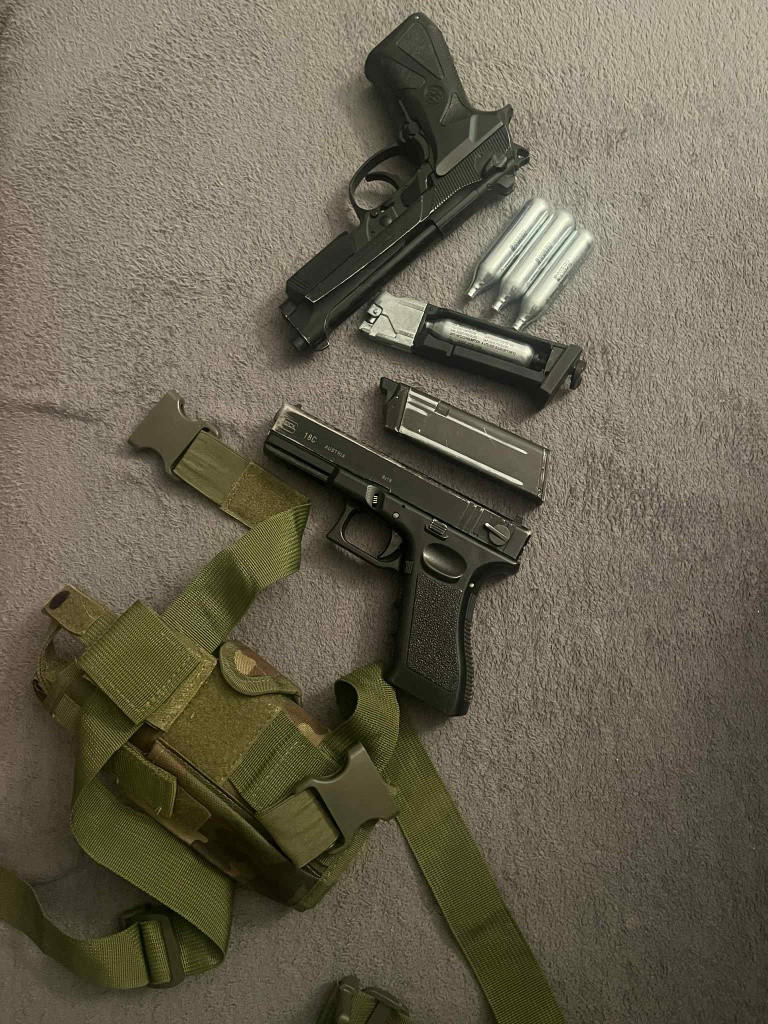 Dobrý deň,predám: Glock18c-sičí zásobník Berreta 90 Co2 -Plne funkčná Pridám stehenný nosič+Co2 bombičky