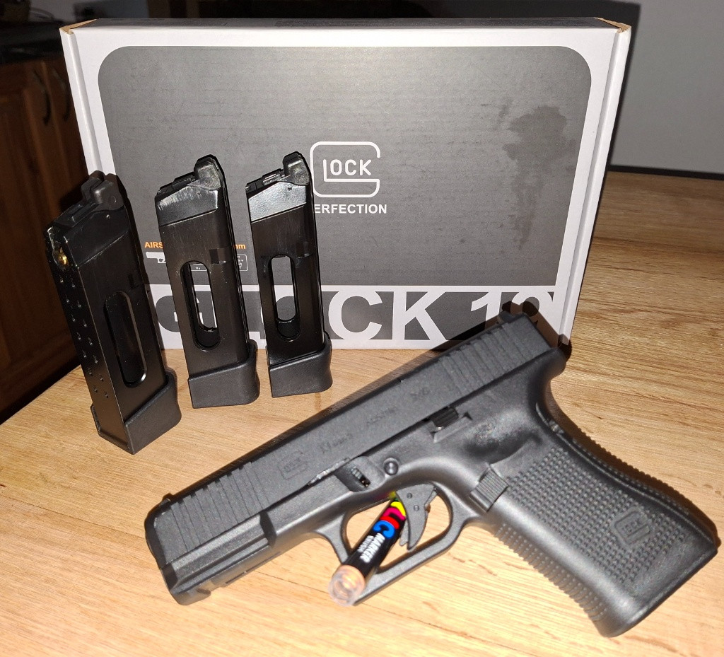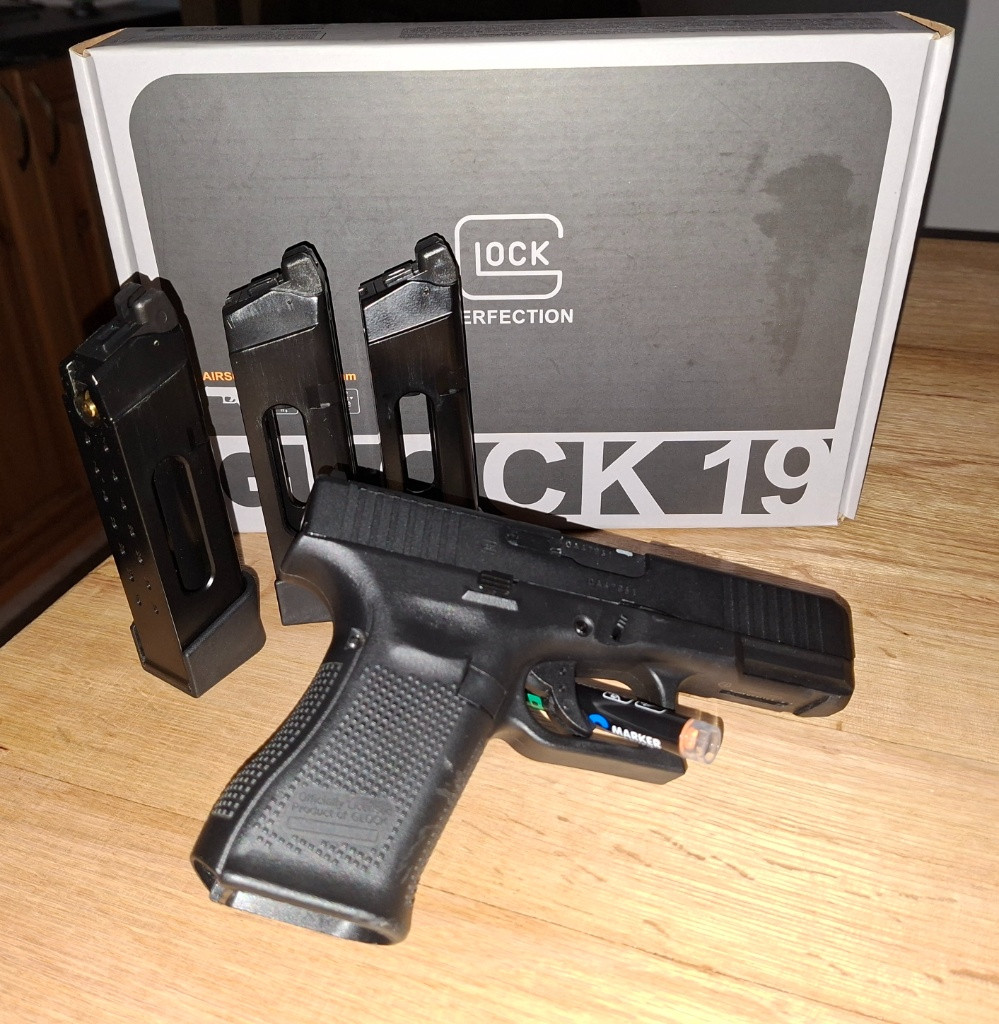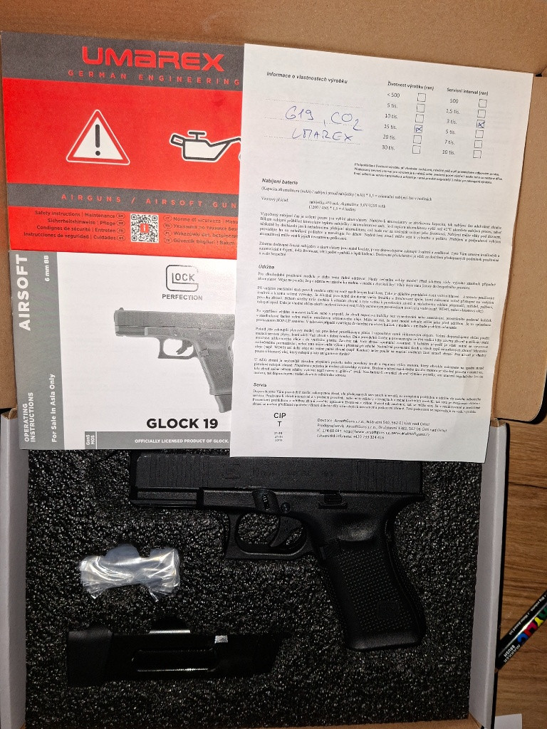 Dobrý den, prodám glock 19 gen 5 od Umarex. Dlabe CO2 i green gas zásobníky. Prodám z důvodu, že mi nesedl do ruky a byl se mnou na 3 akcích. Dohromady nastřílel asi 15 zásobníků a většina na zahradě, uvnitř vyměněná hlaveň za meaple leaf 6,3 a hop guma meaple leaf desepticon zelená.Ke zbrani jsou celkem 3 CO2 zásobníky a přihodím pár bombiček