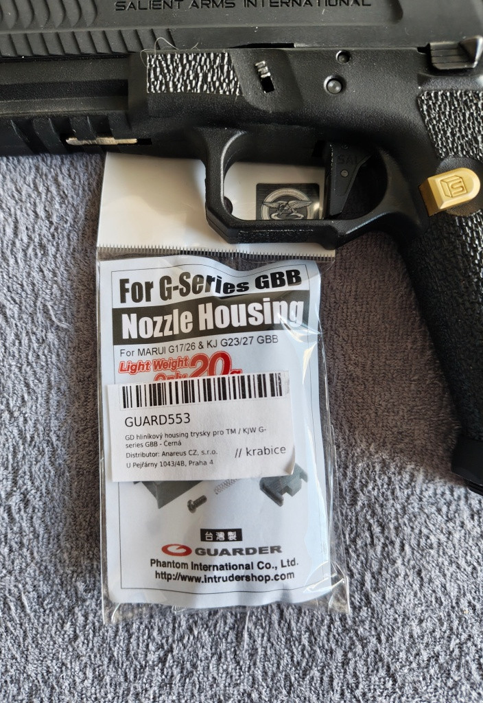 Prodám Glocka SAL v licenci od EMG, výrobce je AW / WE. Pistole nepotřebuje aktálně žádnou péči. Je naistalován RMR kolimátor, plus je v něm Maple Leaf 6,02 hlaveň s Maple gumkou a Guarder komorou. K pistoli je jeden zásobník a náhradní UP blowback jednotka, ta je však Guarder a při instalaci je třeba mírně upravit trysku. Výměna použe za AAP01. Pistole zvládá různé váhy stříleno bylo 0,25-0,32g