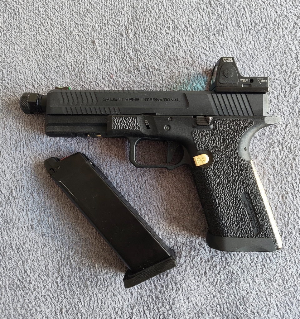 Prodám Glocka SAL v licenci od EMG, výrobce je AW / WE. Pistole nepotřebuje aktálně žádnou péči. Je naistalován RMR kolimátor, plus je v něm Maple Leaf 6,02 hlaveň s Maple gumkou a Guarder komorou. K pistoli je jeden zásobník a náhradní UP blowback jednotka, ta je však Guarder a při instalaci je třeba mírně upravit trysku. Výměna použe za AAP01. Pistole zvládá různé váhy stříleno bylo 0,25-0,32g Na ceně se dá domluvit.