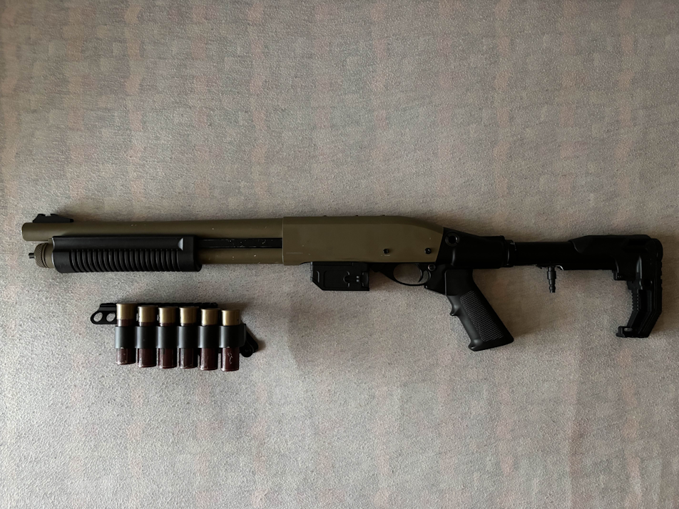 Zdravím, prodávám svou brokovnici (přesný název jsem nedohledal, ale byla kupovaná na Taiwan Gun). Zbraň je předělaná na HPA a je v ní adaptér na M4 zásobník. Už chvíli mi tu leží a není na ni čas, má pár kosmetických vad, ale vše je plně funkční. Ke zbrani byl ještě nosič broků a broky. Cena mi přijde fér, ale při rychlém jednání jsem ochotný slevit. :) V případě zájmu pište SMS nebo mail.