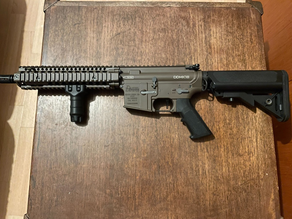 Prodám limitku Daniel Defense MK18 od G&P s Ceracote keramickým nástřikem. Zbraň z venku stav 9/10, velmi málo hraná. Stará zhruba 2 roky. Uvnitř GP Mech, RA píst, AS parts hlava pístu, cyclone tryska, GP 18:1 kola, M110 pružina, Maple leaf super macaron guma, prowin komora, Perun procesorovka Zbraň by potřebovala trošku péče, nestřílela přes rok, proto nižší cena. PC jen zbraně přes 12k, vnitřek další 5k https://www.anareus.cz/cs/m4-m16-sr25/10998-egt-dd- m4a1-mil-spec-cerakote-h-258-chocolate-brown-GP- CKE008CB.html? srsltid=AfmBOoq_62CgfsLTbhjLreGokOBCuLhzYdisf6- 3KmlZPj-VFN2cqWz3 O ceně jsem ochotný jednat, osobní předání v Praze