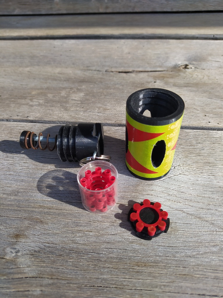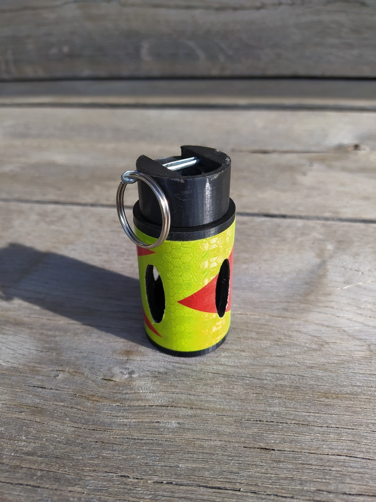 Granat akustický na kapsle. Po odjištění pojistky se granat odhodí a při dopadu na zem bouchno kapsle uvnitř. Je opakovaně použitelný po snadné výměně kapslí. Vhodný na airsoft, paintball...