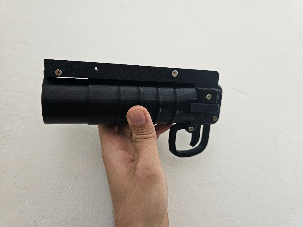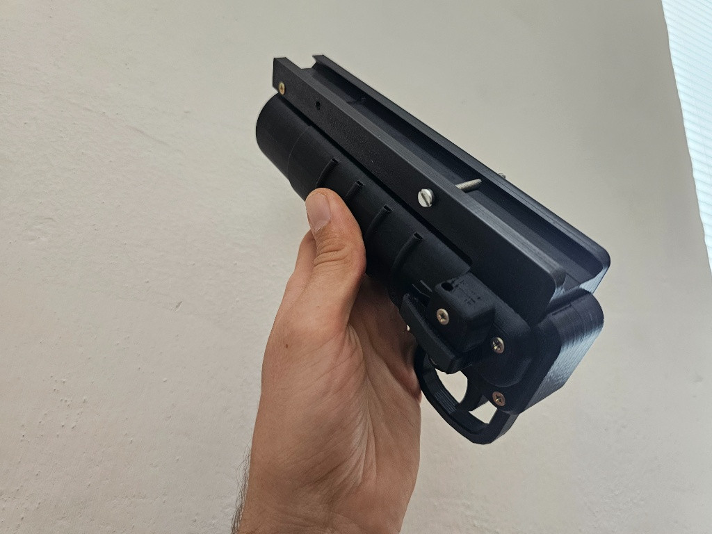 Prodám podhlavňový granátomet viz. obrázek. Připevnění na RIS lištu predpažbí. Granátomet je bez granátů. Materiál plast (3d tisk)