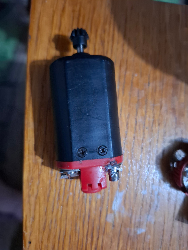 Prodám motor Guarder Infinity, na kterém je potřeba opravit konektor (nebo kontakty napájet přímo na desku). Jelikož mám pájku (nejspíš i ruce), která stojí za dvě věci tak je bohužek okolí konektoru popálené po pokusech opravy. Funkčnost ovlivněna není a motor byl minimálně používán, jen se mi povedlo urvat konektor po opravě konektoru na zbrani, který byl moc těsný.