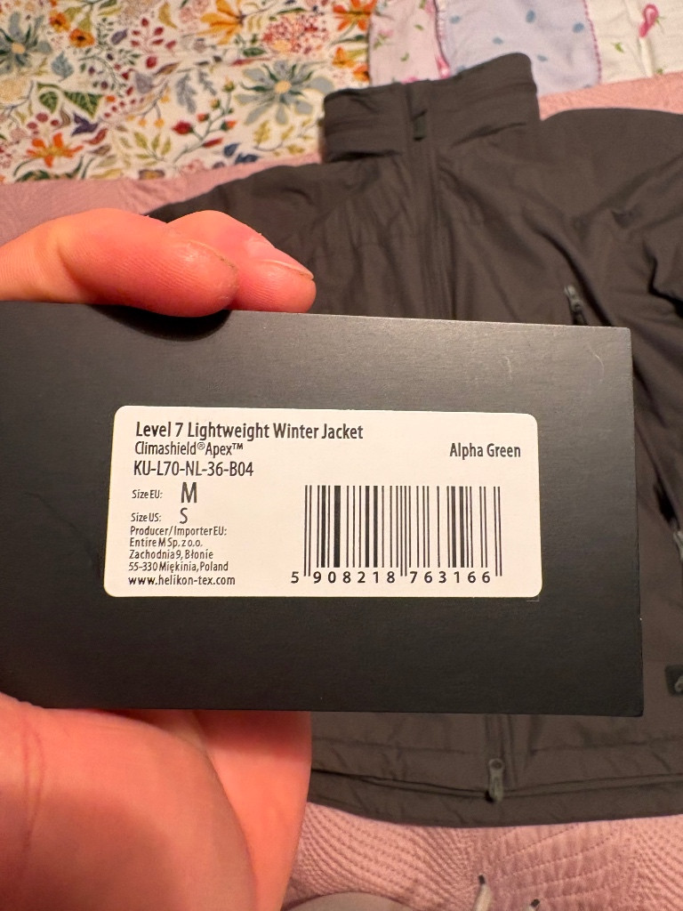 Velikost M, Rip-stop povrchová úprava, vodo-odpudivá, sbalitelná kapuce. Limity: mokrá - 5, suchá -15, extrém v pohybu -25. PC nové aktuálně 4000,-