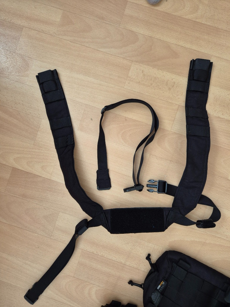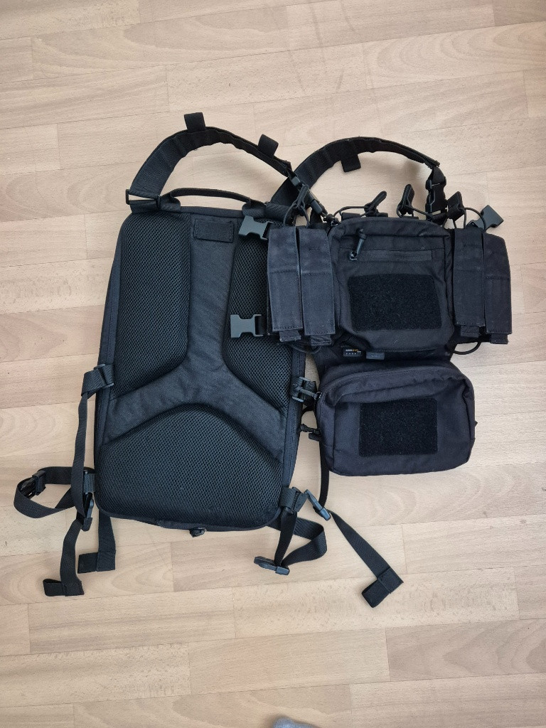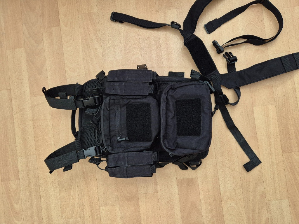Zdravím, mám zde na prodej černé provedení HELIKON Training Mini Rig. Z jiného kompletu jsem vzal batoh a přepl sponama na záda. Samozřejmě jsou k tomu i původní zádové popruhy. Je půl roku používaný. Důvod prodeje...je konec airsoftu na hřišti. Posílám přes zásilkovnu - hradí kupující.