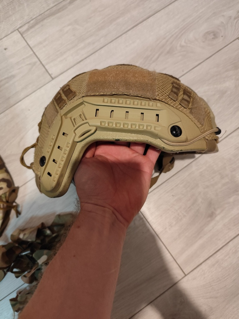 Mam na prodej helmu Aholdtech (z aliexpress), nabizeny tam jako balisticky. Je to kopie OPS CORE FAST, rozmer XL na hlavu 59-62cm ultra high cut. Polstarky typu Team Wendy. Barva TAN/piskova, ma potah v cinskym Multicam a tasku na transport. Stav BDB, barva je trochu odrena na hranach. dobre funguje z originalnimi uchytami Wilcox nebo Norotos, nemaji vule. Vsechny upinky cele. ma pridane nejake dalsi polstarki co jsem z nim pouzival. Prodavam jako helma pro airsoft, netusim jakou ma balistickou odolnost. Cena: 4000czk