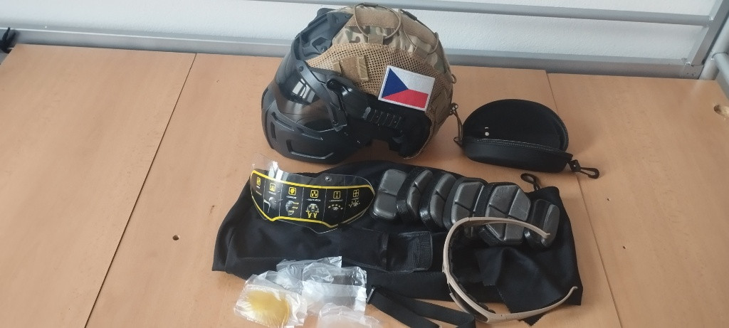 Helma typu Fast s obličejovou maskou a povlakem v multicamu s brílemi a výměnnými skly.+vak na helmu. Možnost osobního odběru v Brně nebo zásilkovnou+89kč