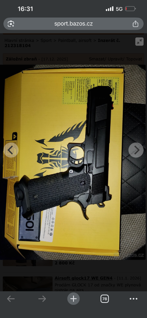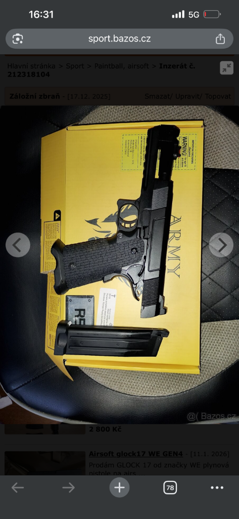 Prodám nebo vyměním, zbraň je jako nová :) Tady jsou veškeré údaje https://www.airsoft-online.cz/zbozi/airsoftova-pistole-hi-capa- r501-cerna--celokov--gbb--army-armament--r501/? srsltid=AfmBOorEjXmvhgFYCpT4ZAMsx6uqXhDkH0khd0qrBi X0reVPNBgHAXgZ