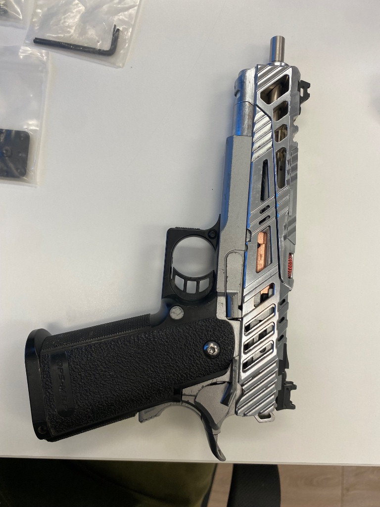Prodám pistoli Hi-Capa 5.1 v tuningu od CTM TAC. hlaveň Maple Leaf 117 mm zelená gumička Autobot (pravděpodobně Maple Leaf) CNC hop-up od Maple Leaf vodítko pružiny Cow Cow zesílená vratná pružina Guarder vzduchová komora Marui zesílená vratná pružina pístu zesílená pružina spouště blokátor zadržení závěru vnější díly (slide) od CTM TAC tracerová nástavba s imitací výstřelu panely pro zkrácený chod závěru od CTM adaptér na HPA od CTM TAC (bere M-series zásobníky) V balení dám: tři zásobníky M-series green-gas zásobník od Marui veškeré náhradní drobnosti (gumičky, pružinky apod.) Cena: 12 000