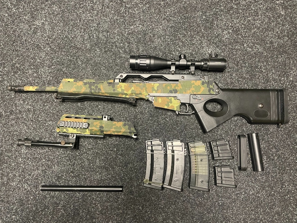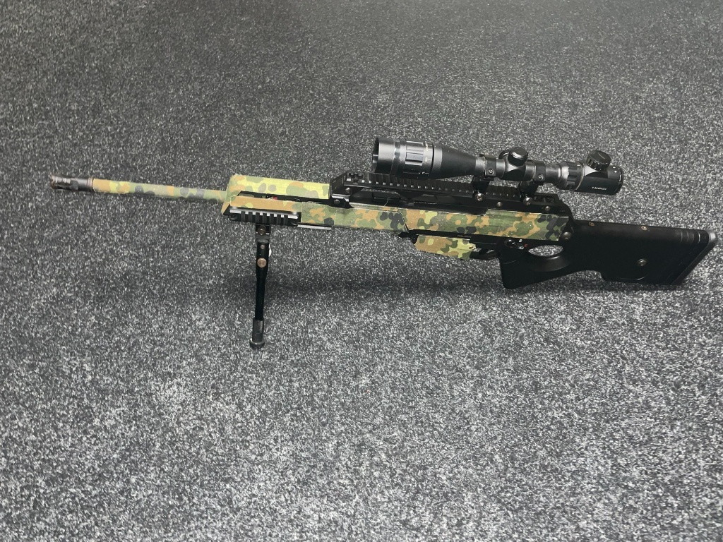 Použitá ve velmi dobrém stavu. Full Auto DMR Výrobce : J. G. Works Po upgradu: 2,45J na 0,32g, vyměněny díly vzduchotechniky, píst, hlava válce, hlava pístu, zátěžová kola,ramínko podavače, vypodložkováno, nerezová přesná hlaveň, ML hop up gumička. Na AEG tichá zbraň. Po úpravě nebyla nikdy na akci, nastříleno pár zásobníků na test. Dvě předpažbí vnější hlaveň zásobníky puškohled 3-9x40 s montáží součástí Zbraň polepena maskovací páskou, která lze v případě potřeby bezproblémově sundat. Další info a foto na vyžádání. Pouze prodej.