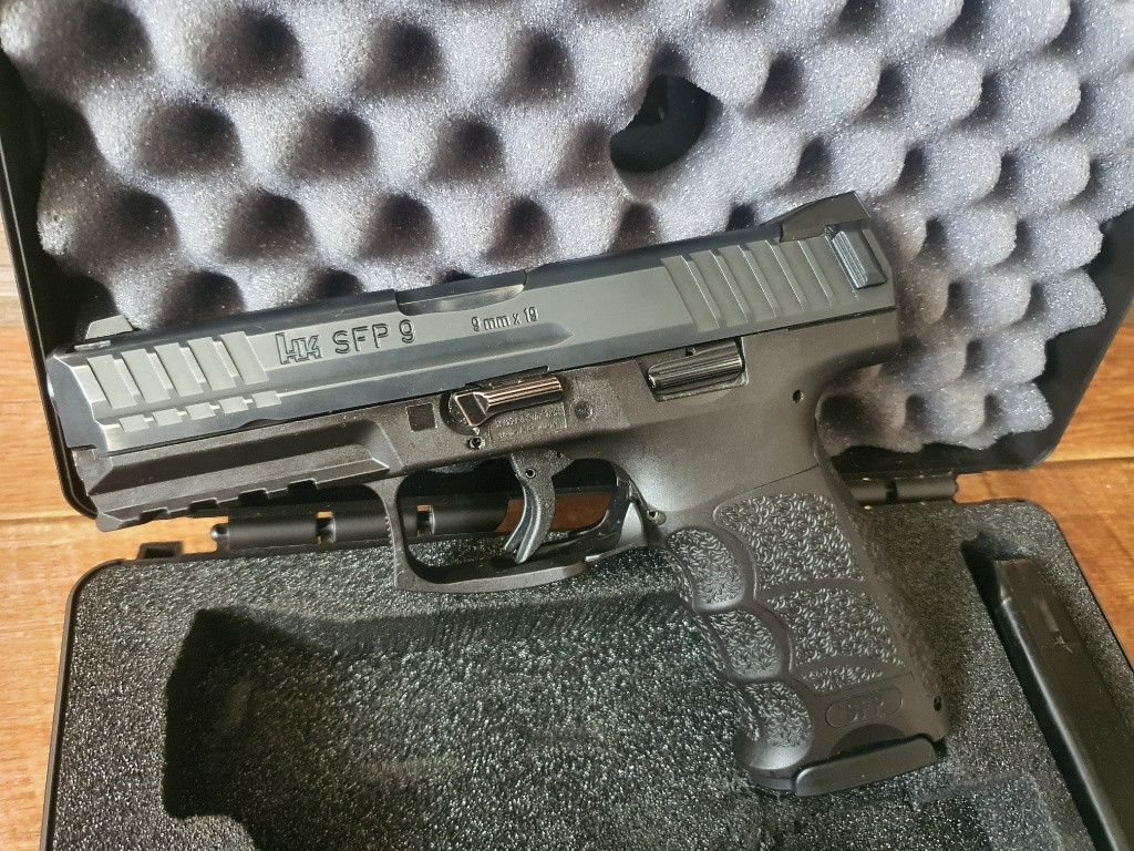 HK SFP 9 . Nastříleno cca 2000. Pořizovací cena je cca 31k. Ke zbrani 2x zásobník, hliníkové čelo bez otv. a hliníkový vodič úderníku ( dovoz usa hk parts ), Safariland pouzdro s palcovou pojistkou, vnitřní pouzdro a C/TAC od rh holster. Na ctac je přilepeny suchý zip pro použití do batohu atd... bez problémů a stop jde odlepit. Prodej pouze držiteli příslušného ZO + povolení kat. R3. Důvod prodeje, na nošení mám menší a tahle by jen ležela v trezoru.