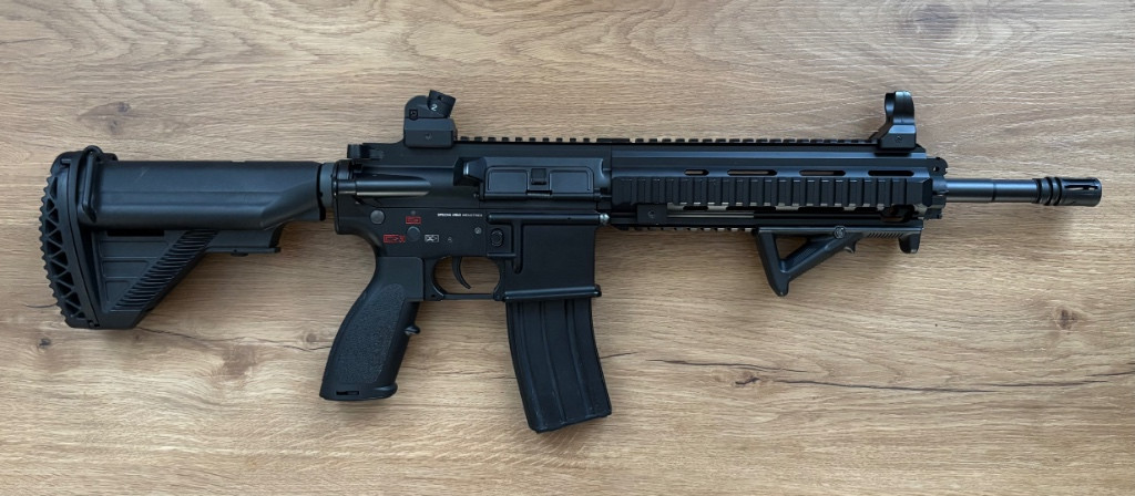 Prodám HK416 Přetěsněná vzduchotechnika aby neutíkala vzduch, píst s kovovými zuby(oproti základnímu celo plastovému), výměněná tryska za aspro. Poladěný mech proti prasknutí a vypodlozena kola... Prodloužená hlaveň byl strženy závit u původního tak je tam prodloužení na první. Jinak je to základu.