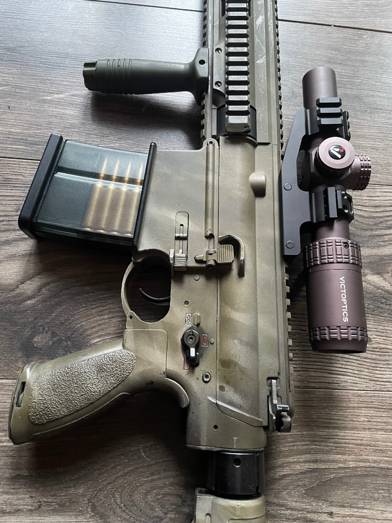 Dobrý den, prodám HK417 od E&C. Zbraň po upgradu. Proserosova ecu, kompletně postavený vzduch, cnc komora, přesná hlaveň, psg120 pružina… Dává 2,3J na o.40. Malá díra v pažbě pro kabely, nástřik.. K zbrani 5x zásobník, tlumič. Optika není součástí prodeje. Možnost výměny za hpa (ne aap apod.), případně drona.