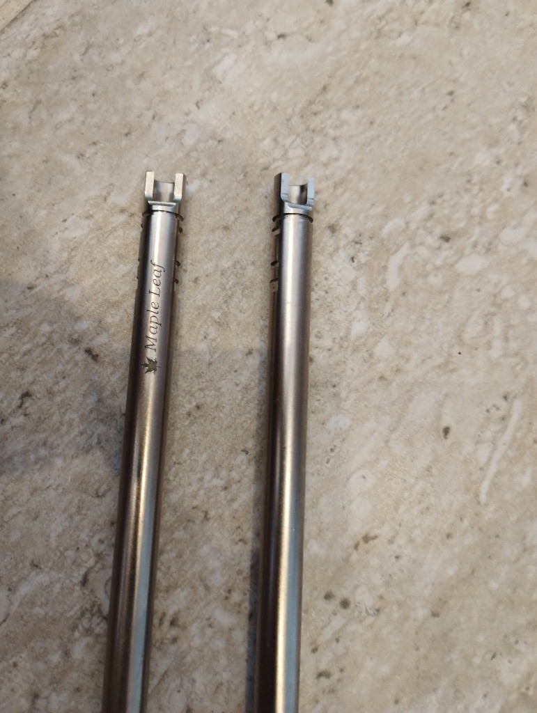 Predám hlavne maple leaf crazy jet, vhodné na gbb, gbbr, a niektoré sniperky. Ja som ich chcel použiť na AEG DMR, na čo som kúpil aj gumky maple leaf hot shot a cool shot. Najlepší výkon som však dosiahol z gumkou begadi fly7. Takže tieto hlavné nevyužijem. Všetko je úplne nové, iba odskúšané na pár výstreloch. Dĺžky hlavní sú 370mm a 420mm. Gumky sú obidve 60°. Cena: hlaveň+ gumka 36€. Všetko spolu 60€