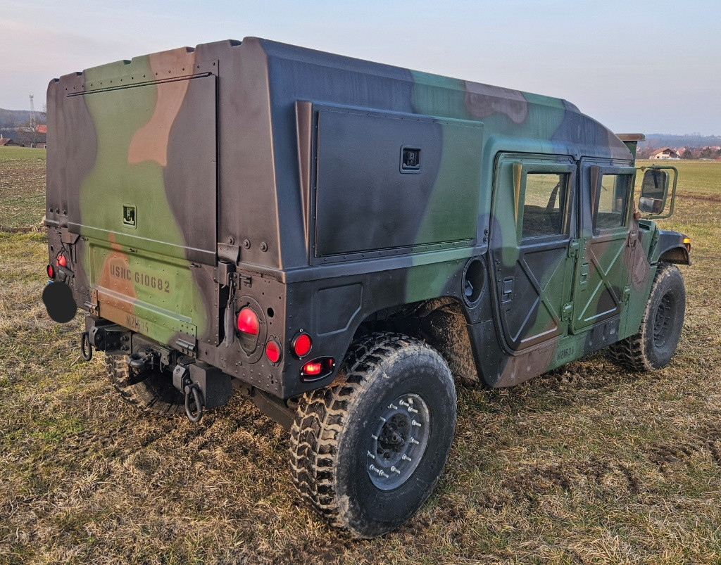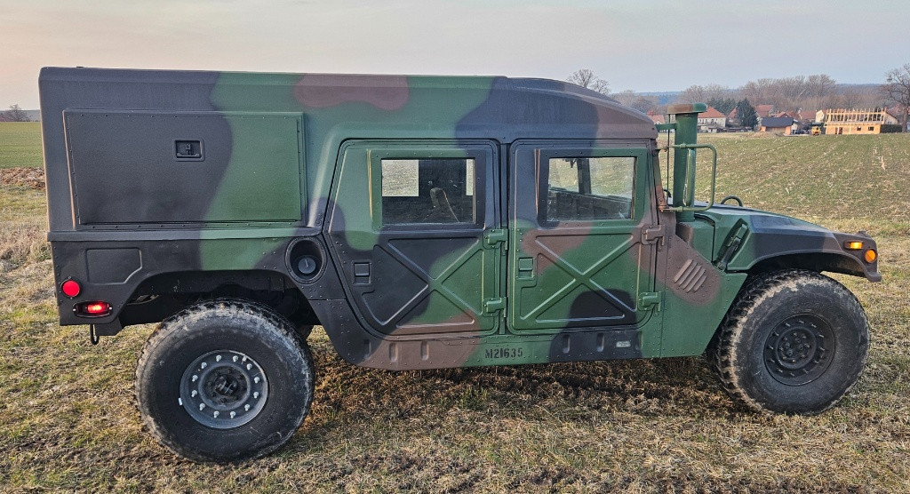 Nabízím k prodeji své hummví, verze helmet top. Motor 6,5l – 4 rychlosti. Auto v pěkném stavu, péči má takovou, aby bylo vše v pořádku. Dříve sloužil u Námořní pěchoty a má její původní značení. Následně jsem si ho přestavěl na tuto variantu s pevnou střechou – střecha prošla kompletní renovací. Dveře originál X-doors, také po kompletní renovaci. Převážně LED světla, je vidět na fotkách. 4x vysoká sedadla s novými potahy, originální výdřeva a stoleček na radiostanici. Vysoké sání a fungující brodění - zkoušeno jen na suchu, do vody spolu nejezdíme. K vozu mám i všechny samolepky a štítky, chtěl jsem je mít všechny nové, zatím nenalepené. S autem pravidelně jezdím, veteránské značky, není to žádný včera dovoz a dnes prodej. Vůz je spolehlivý, velmi pěkně jede, tiše a hladce řadí. K vozu mám přikoupené offsetové držáky na 2 antény a 2 kompletní antény, originál nový vysoký výfuk a zadní nárazník, tyto díly nejsou součástí prodeje, ale rád je k vozu nabídnu, bude-li zájem. Nestihl jsem je namontovat a z důvodu prodeje ani montovat nebudu. Cenová představa je 930.000,-Kč a navštíví-li mě slušný a rozumný zájemce, rád s ním o ceně budu jednat. Nestačí-li Vám výše psaný popis, pište nebo v rozumné hodiny volejte. Díky, s pozdravem David.