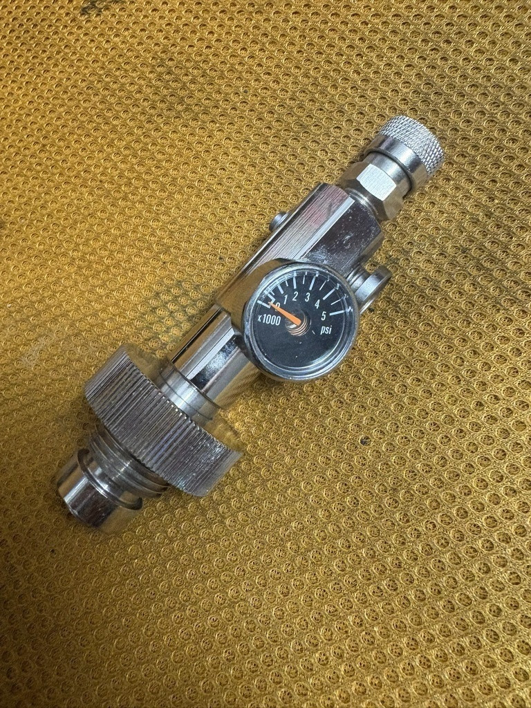 Adaptér pro přeplňování HPA lahví z potápěčských lahví, koupeno na actionshopu, použito asi 5x https://www.actionshop.cz/pbs-scuba-fill-station-300-bar/