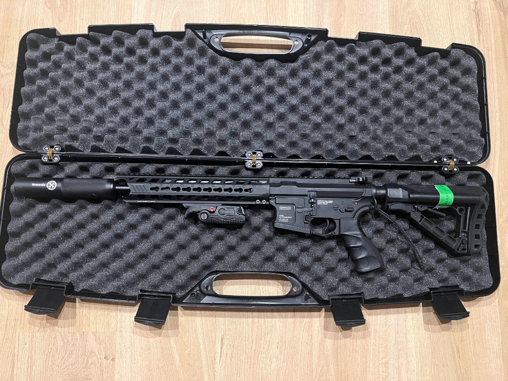 BEZ TLUMIČE NA FOTCE Zaklad G&G Predator ... Predelane do HPA - Polarstar F2 + Maxx komora + ML hlaveň + ML gumička + kabeláž, gumičky, těsnění, úpravy F2... vývod HPA hadice vzadu, FCU v pazbicce Kompletovano v Epes s premiovym servisem Podepsano - Solis + Padavan (majitel Epes + přední technik) + plastový kufr zdarma