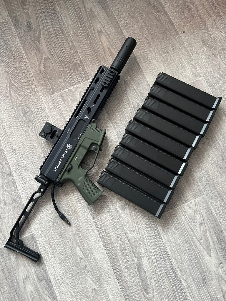 Dobrý den, prodám HPA stribog s pulsar H enginem. KM head hlaveň, SA prime hopup komora. Posílám tak jak je na fotce. Detailnější fotky mohu zaslat na whatsapp. Posílám přes Zásilkovnu.