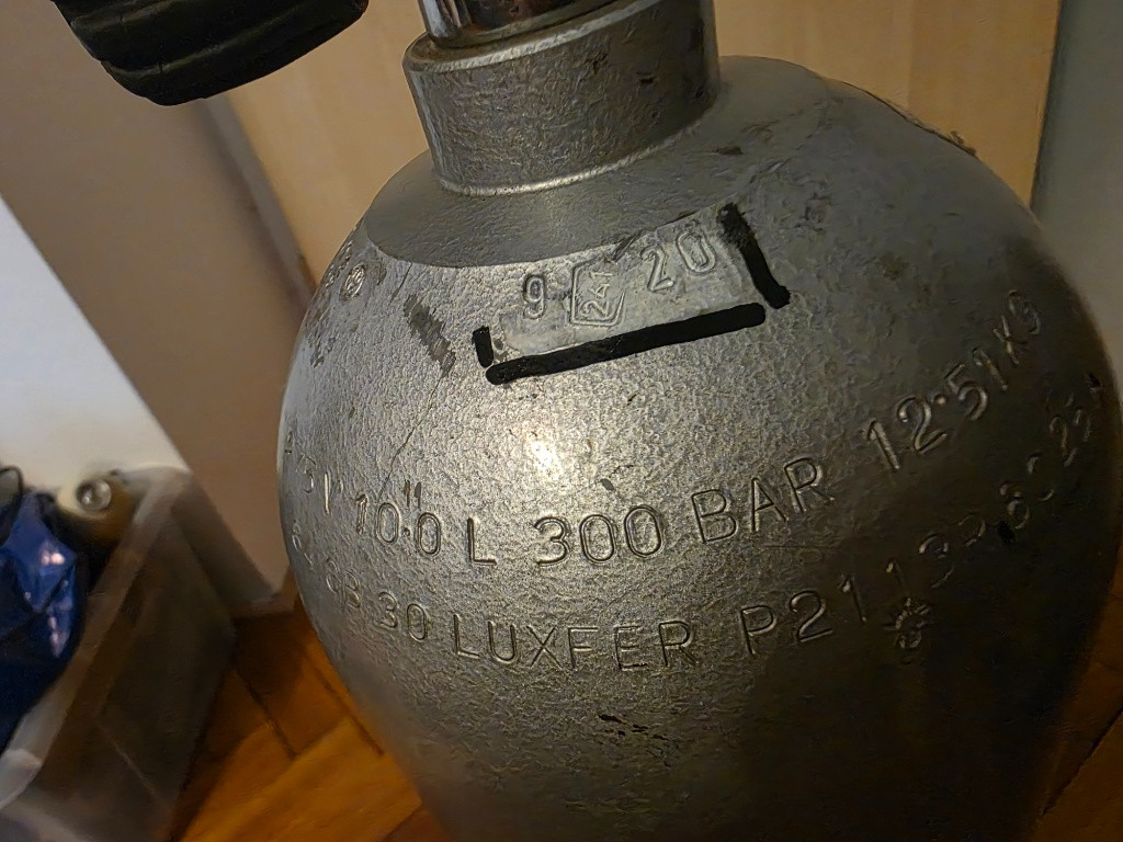 Prodám tuhle 10 litrovou , 300 barovou vzduchovou láhev na propouštění vzduchu do malých lahví.
