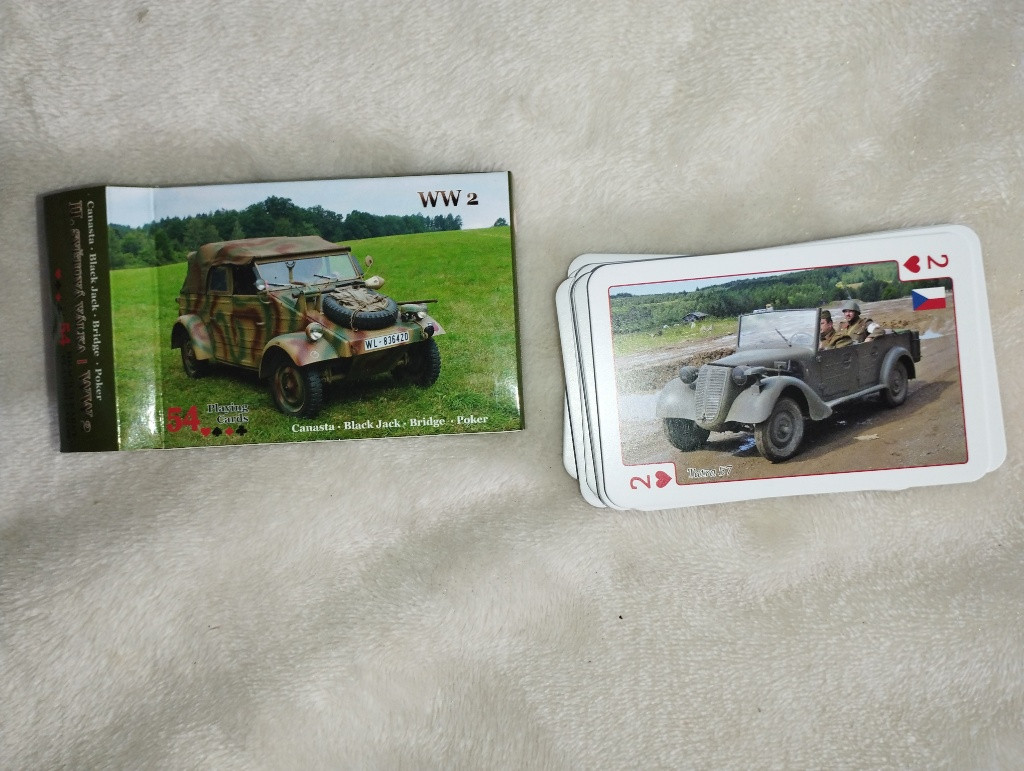 54 ks karet s vojenskou tematikou převážně s vozidly z 2 světové války 25 kč + poštovné