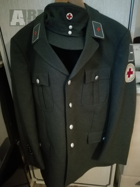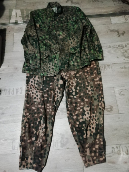 Poválečný zdravotník, uloženka. Sako, kalhoty, čepice. Velikost na postavu kolem 170cm až 180cm. Cena cca 3000Kč. Hrachy kalhoty a blůza. Miltec. Velikost 170cm až 180cm. Cena cca3000 Kč
