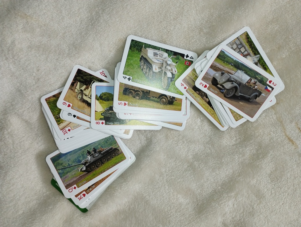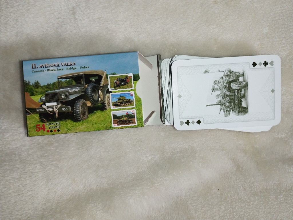 54 ks karet s vojenskou tematikou převážně s vozidly z 2 světové války 25 kč + poštovné