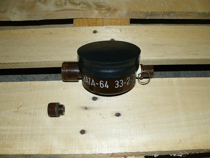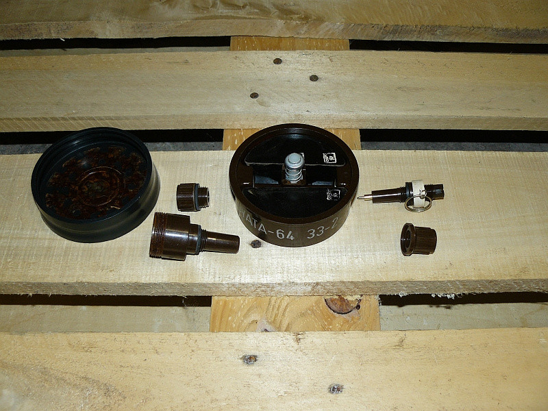 Hungarian GYATA-64 anti-personnel mine (factory INERT) + original explosion simulator charge (used, FFE, very rare), plus gratis mine warning sign. NOS piece, in perfect condition, from 1970's. 80EUR + shippinh.