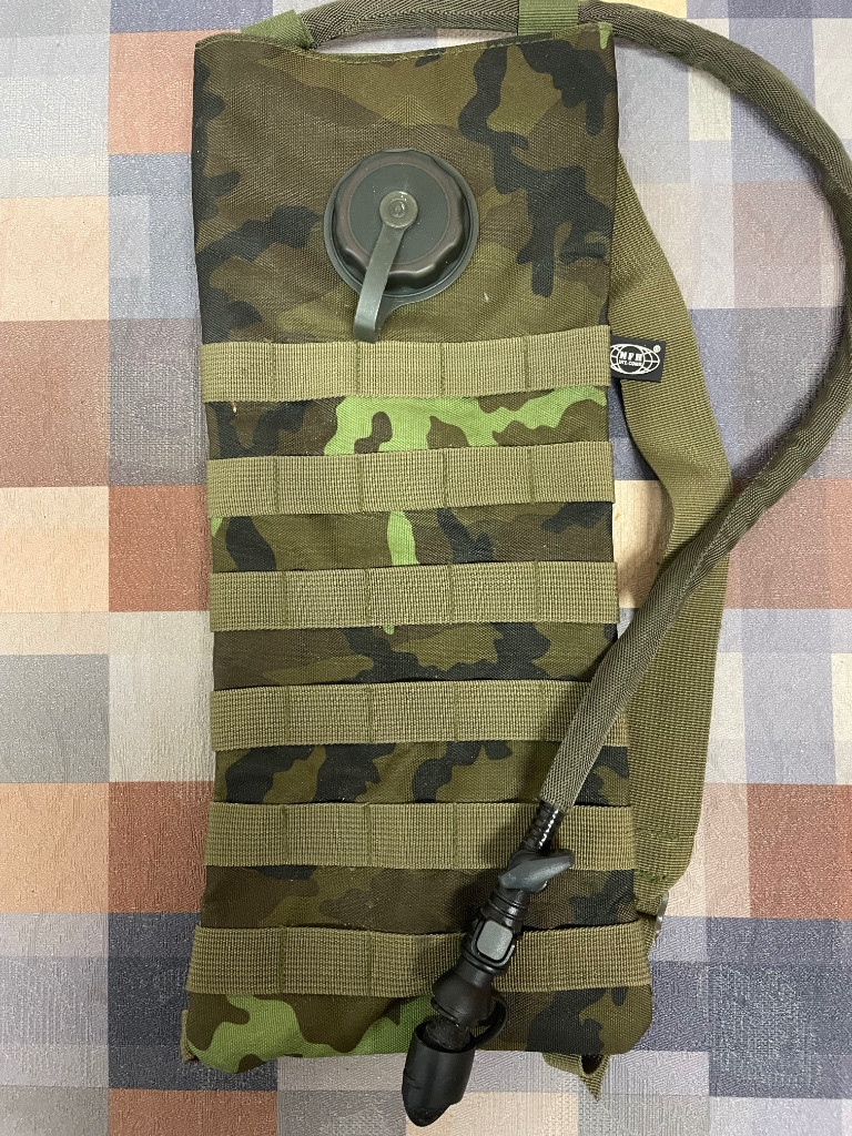 Prodám používaný na čistou vodu týden, buhužel již nevyužiji.Ve výborném stavu, má všechny díly, na 2,5 l. Vzor 95, značka MFH. MOLLE vazba, která se nachází na čelní i zadní straně a umožňuje připnutí dalších kusů vybavení. Vak má dvě možnosti nošení. Díky nastavitelným popruhům ho lze nosit jako batůžek a v případě potřeby ho lze upnout v batohu pomocí dvou pásů na patentky. Rezervoár na vodu i hadička jsou vyrobeny ze zdravotně nezávadného materiálu, splňujícího přísné normy. Pro dokonalé vyčištění lze použít čištění na camelbag MFH®. Náústek je proti nechtěnému protékání opatřen uzavíratelným ventilem. Cena bez poštovného.