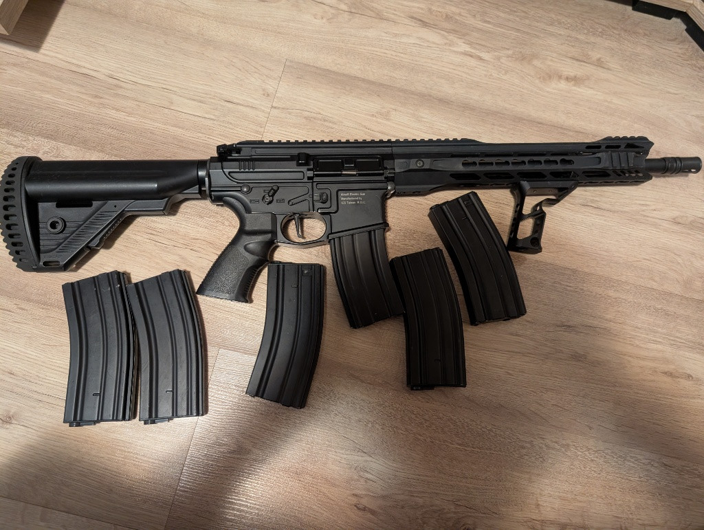 Prodám ICS CXP-MARS Komodo BK, mám ji od roku 2020. Ve zbrani je CNC horní díl mechaboxu od Retro Arms. Vzduchotechnika je kombinací značek Retro a Epes. Kola SHS, procesorovka Perun Hybrid. Solink bezuhlíkový motor 31k. Maxx Hop-Up komora, Maple Leaf gumička a Prometheus hlaveň. Zbraň jsem používal na 2,5 J, teď jsem tam tedy dal slabší pružinu ASG M125. Díky ICS dělenému mechu je výměna pružiny rychlá a snadná, stačí vytáhnout jeden čep a pak otočit imbus na mechaboxu. Ke zbrani je 6 zásobníků od Cymi. Zbraň je možné vyzkoušet v okolí Berouna. Případně ji můžu poslat na dobírku, dopravu platí kupující.