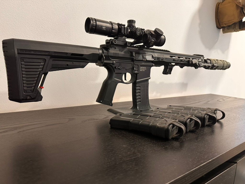 Zdravím , prodám své vymazlené DMRko , jedná se o AR platformu od zančky ICS , zbran je po kompletním upgradu a postavená jako DMR. co se týče upgradu tak jsou tam zátěžové díly jako kola(ASG),motor(Ifinity). válec(MaXX) a hlava válce(EpeS) , píst(ICS zesílený) a hlava pístu(MaXX) , Hlaven MapleLeaf (až do tlumiče 6.02) , MaXX Hopup komora , MP hopup gumička..Zbran aktualně dává na 0.4g okolo 2,5J. Ke zbrani přidám tlumič , zásobníky 4x ICS originál. možnost výměny za něco zajímavého.