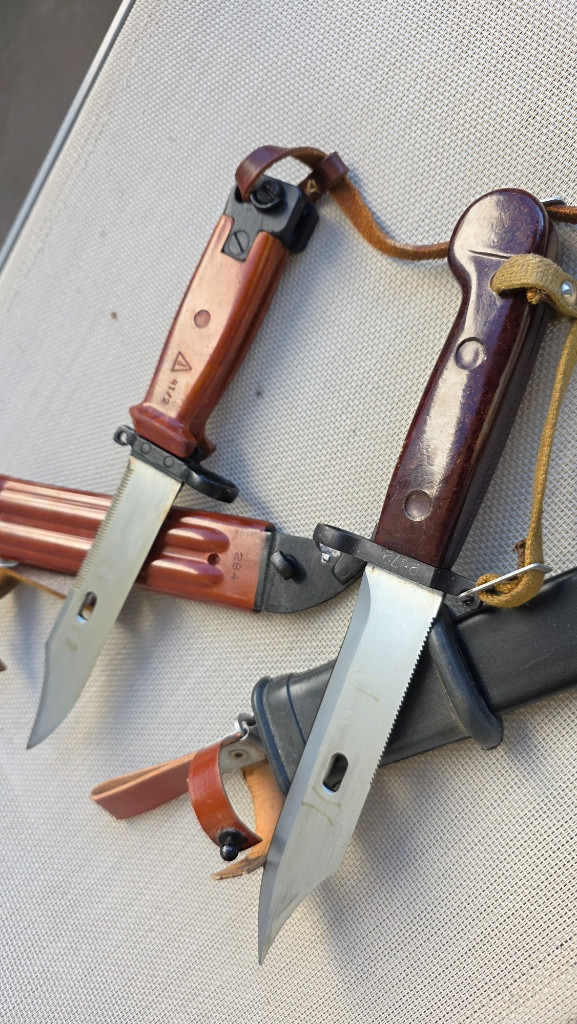 Prodám dva bajonety pro útočnou pušku AK. Oba jsou nepoužité ve 100% stavu,ruská výroba a značení trojuhelník Iževsk.Sběratelská záležitost.Víc fotek najdete na Bazoši. Prodám pouze jako celek,cena za oba 5000kč + zásilkovna.Osobní předání Svitavsko.