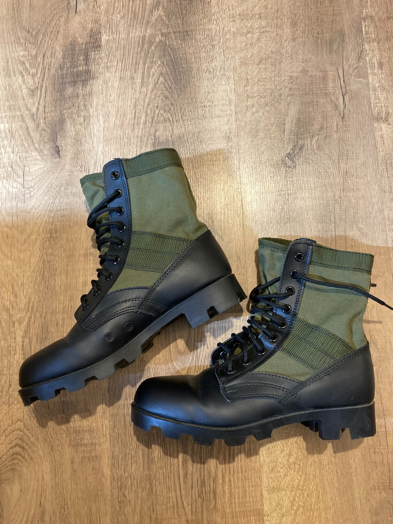 Prodám tuto zdařilou kopii. Velikosti 8W. Boty jsou pouze vyzkoušené - nesedí mi velikost. Bohužel jsem je nestihl vrátit. Možná výměna za výstroj z Vietnamské války. https://earmyshop.cz/boty-us-rothco-jungle-zelene