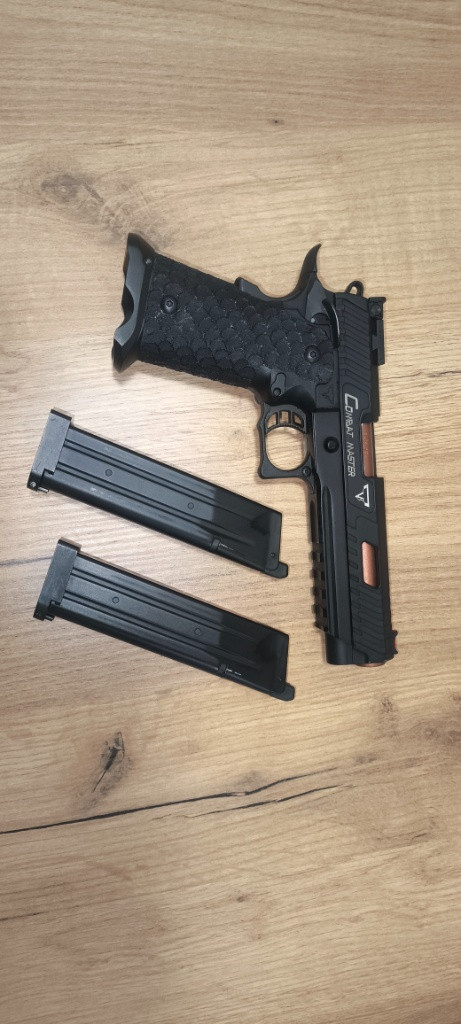 Combat Master od Army Armament. Zbraň byla na pár akcích ale je plně funkční. Mám ke zbrani dva zásobníky, u jednoho ze zásobníku je ztracený pin co drží patku ale je nahrazen. Oba dva zásobníky těsní. Zbraň je ještě v záruce. Preferuji kontakt přes SMS