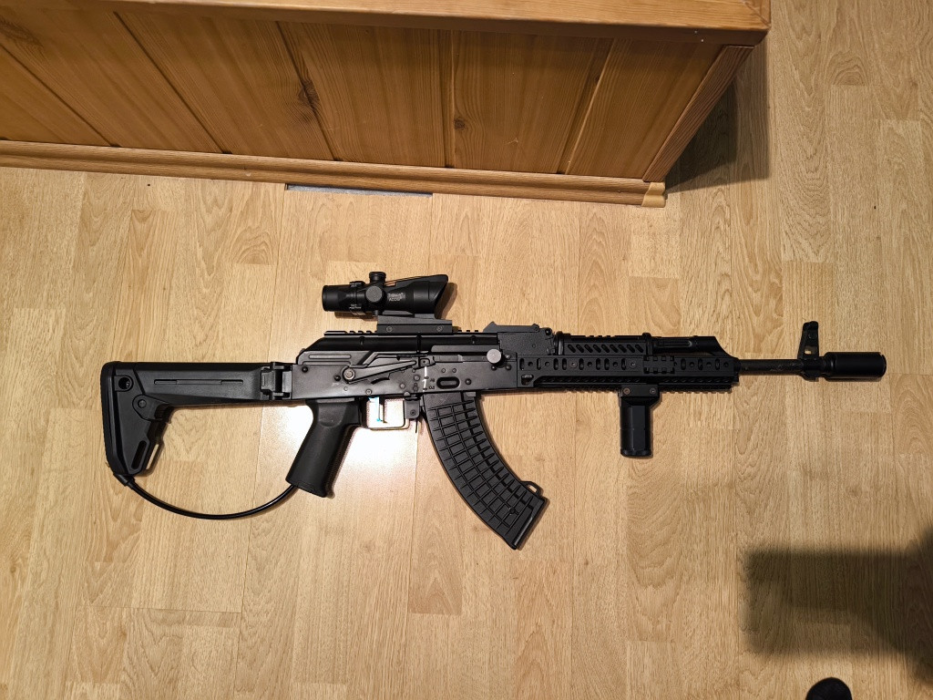 Nabízím k prodeji AKM v hpa se systémem Mancraft PDIK V3. Uvnitř Komora Prowin, guma Maple Leaf. Hlaveň tuším Madbull. CNC spoušť Retro Arms. Předpažbí Zenitco b30 a b31, pažba Zhukov-s, grip Zenitco RK-0, všechno kopie 5KU. Kryt závěru s RIS lištou. Pažbička Magpul, kompenzátor Sound Blaster. Přihodím 2 zásobníky, kolim není součástí prodeje. Za další 2k přidám úplně nový Epes max flow regulátor