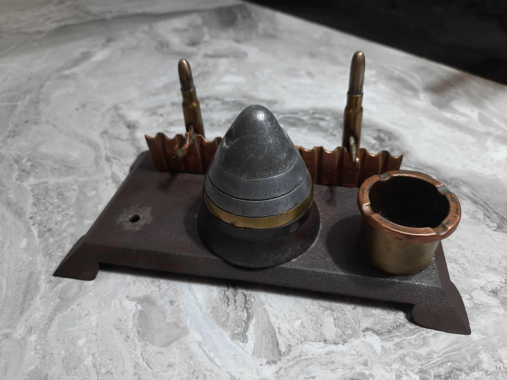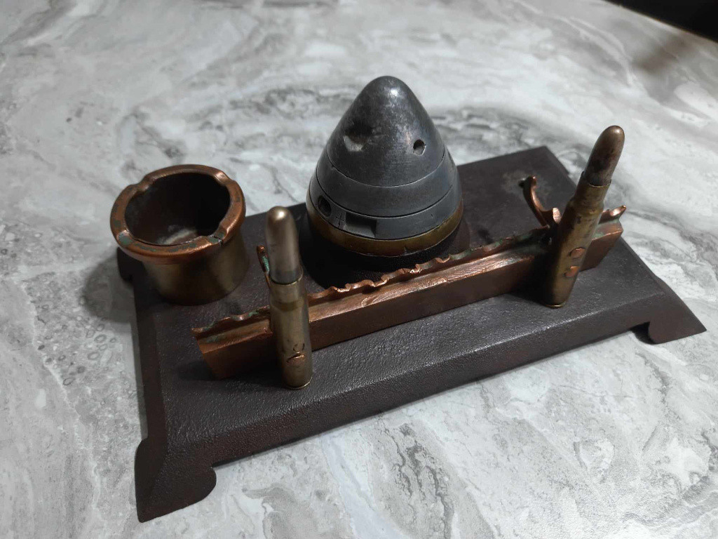Prodám krásný kalamář z období WWI. Chybí jeden kalíšek, zbytek v krásném a původním stavu. Koukněte i na moje ostatní inzeráty - platné do smazání.