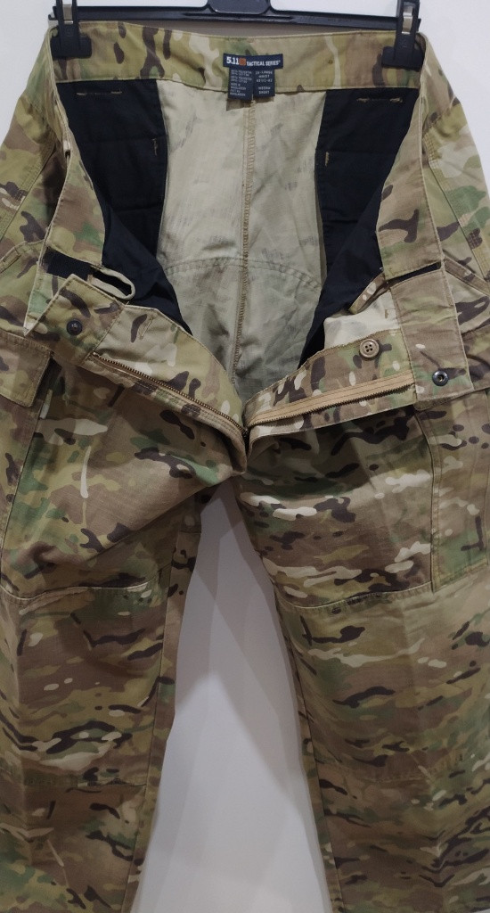 Kalhoty značky 5.11, model TDU v potisku Multicam, vel. 2X- Large - Short. Reálné rozměry: šířka v pase v klidu 53 cm, délka nohavice od rozkroku 74 cm, délka celková 104 cm. "Plovoucí" pas - dají se ještě roztáhnout (dle štítku až na obvod pasu 120 cm). Stav - použité, trochu oprané barvy, bez jakéhokoliv poškození. Posílám přes Zásilkovnu, na dobírku jen po uhrazení zálohy na dopravu předem. Cena k jednání.