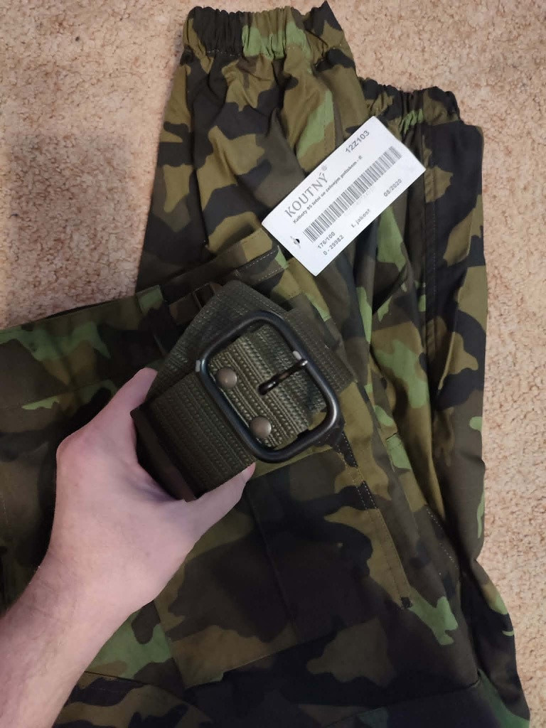 Nabízím ripstop kalhoty 176/100-500 Kč, opasek 81-100-300 Kč + doprava. Vše nepoužité.