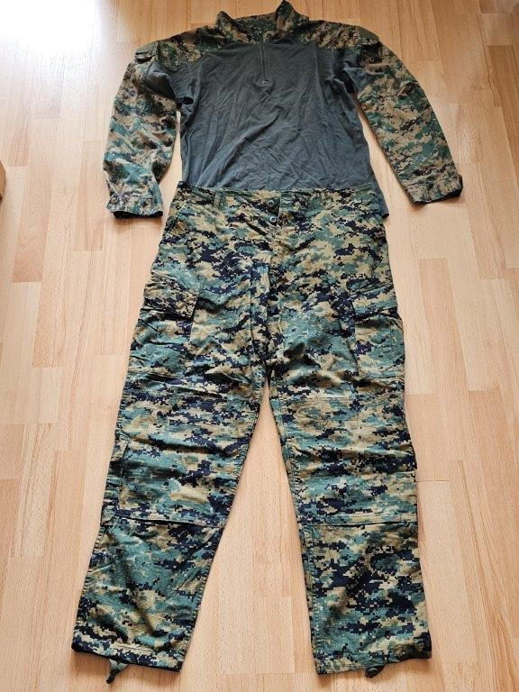 Prodám Kalhoty a ubacs Marpat Woodland. Kalhoty rip stop, střih ACU, materiál neoriginál ale barvy sedí. Ubacs orig marpat twill (prodáno). Obojí mírně použité, kupované jako vel. L ale po vyprání je z nich spíš Mko. Obojí jednotlivě za 500, při koupi obou věcí dohromady 850.