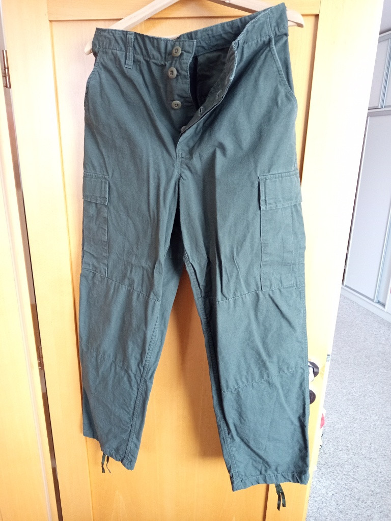 Americké BDU polní kalhoty zelené. Materiál: rip-stop 100% bavlna. Výrobce: USA Stav: Nové Původní cena: 1.550,- Zasílám přes dopravce Zásilkovna. ČR na výdejní místo 95,-Kč ČR na adresu 135,-Kč SK na výdejní místo 105,-Kč SK na adresu 175,-Kč Platba předem na účet.