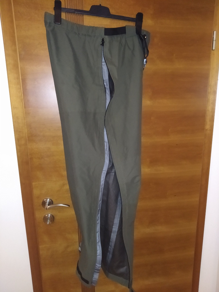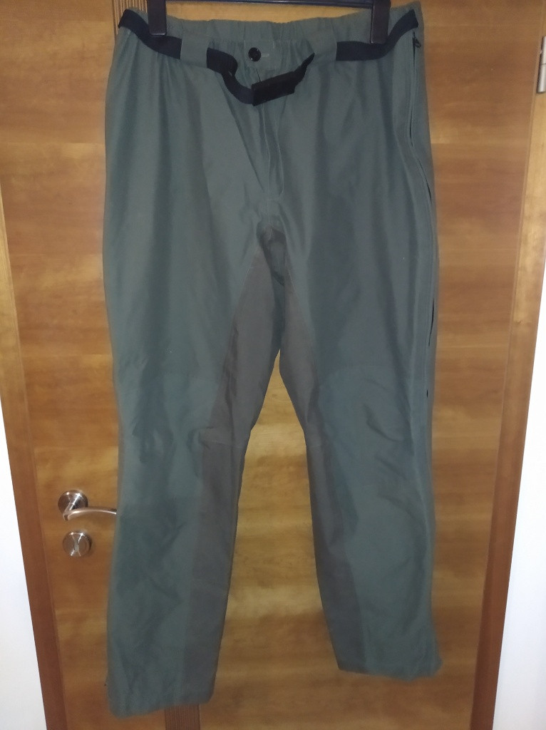 Kalhoty jsou v dobrém stavu a bez děr nebo jiného poškození. Membrána stále funkční. Nohavice rozepinatelne až k pasu (dají se pohodlně obléci i s botami). Dvoucestné voděodolné zipy YKK. Velikost XL (obvod pasu 90 -110cm (pružný pas), délka vnitřní nohavice od rozkroku 82cm, celková délka 112cm), váha 536g. Cena 700 Kč.