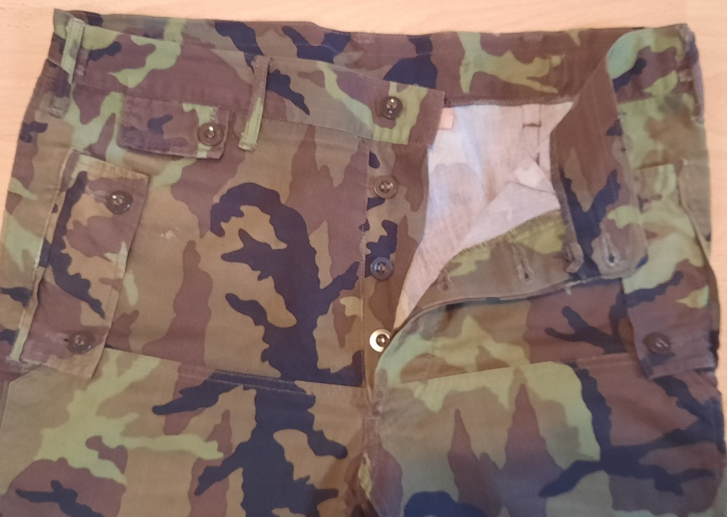 Prodám kalhoty vz. 85 v letním provedení, výrobce OTAVAN Třeboň, velikost 3-50 (180/100). Minimálně použité, sem tam nějaký flíček, ale nic co by nešlo vyprat. Bez děr, všechny knoflíky komplet, chybí pouze stahovací tkanice u rozparků nohavic. Cena 1600 vč. zásilkovny. Další foto není problém, dotazy na jonasplatt@seznam.cz