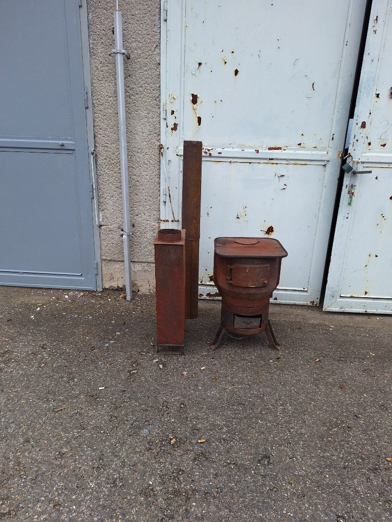 Polní litinová kamna s výměníkem, který slouží, jako lapač jisker