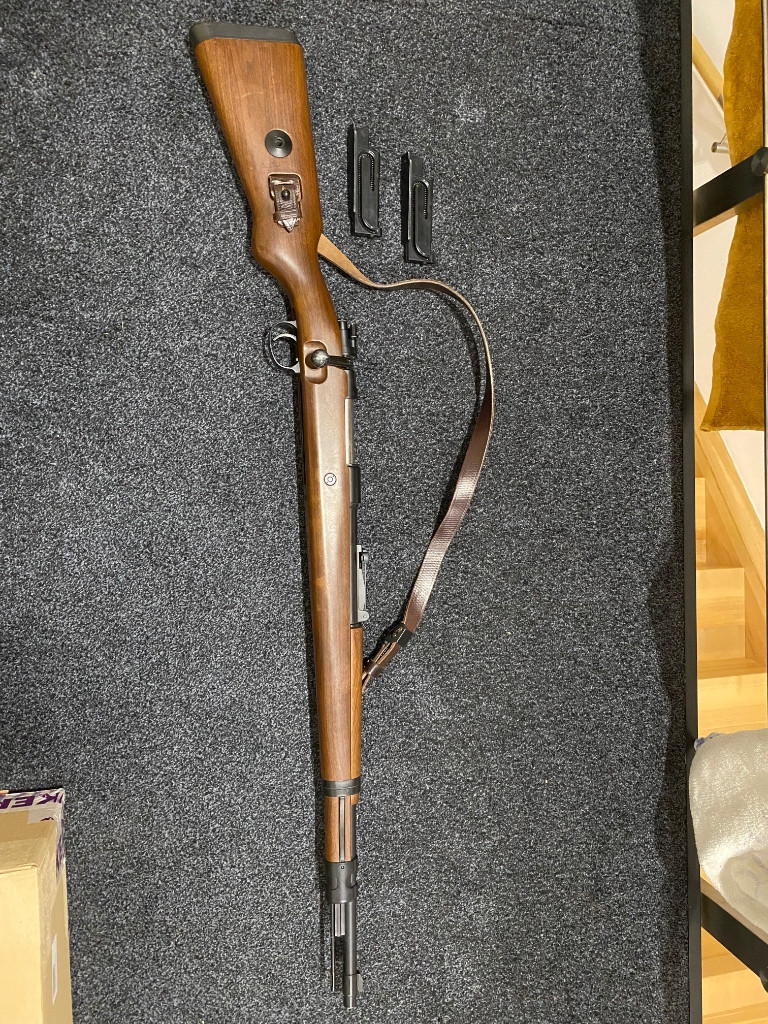 Prodám KAR-98K od výrobce Snow Wolf. Zbraň je používaná, imitace dřeva, je v základu a nic jsem na ní neupravoval. Ke zbrani přihodím 2 zásobníky, obal a kožený popruh (replika) Vlastnosti: Hop-Up: Ano Délka [mm]: 1100 Vyrobeno z: plastu + kovu Kapacita zásobníku [ks]: 24 Typ zásobníku: Tlačný Výrobce: Snow Wolf Pohon: Pružinový pohon Typ střelby: Single Úsťová rychlost [FPS]: ~ 390 Hmotnost [g]: 2830