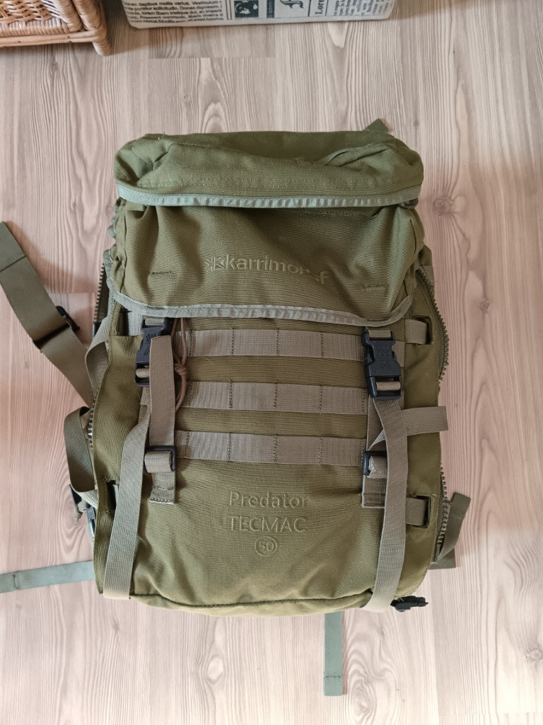 Batoh KARRIMOR Predator TECMAC 50. Cena 2500 Kč i s poštovným při platbě na účet .Dohoda jistá. Koupil jsem z druhé ruky a bohužel se mě nehodí na projekt který plánuji. Jinak je super a materiál je snad nezničitelný. Se mnou nebyl venku ani jednou.