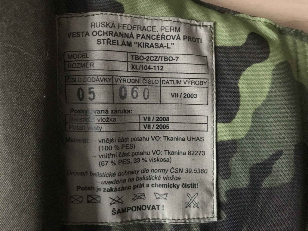 Prodám novú ochrannú balistickú vestu Kirasa-L, včetne měkkých balistických vložek proti pistovým rážím a střepinám. Lze vložit keramické nebo ocelové pláty pro zvýšení ochrany (nejsou součástí prodeje). Cena 5000,-