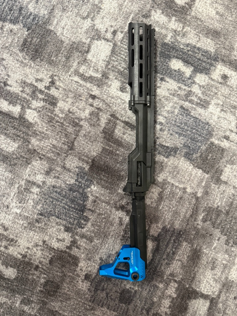 Kit app-01 je tisknutý na zakázku cen byla 2000 Kč. Big Dragomn CNC tubus pažby pro M4 - černý 545Kč. Big Dragomn CNC pažba modrá cena 690 Kč. Kit nebyl nikdy hraný z důvodu hraní APP jako krátká zbran.