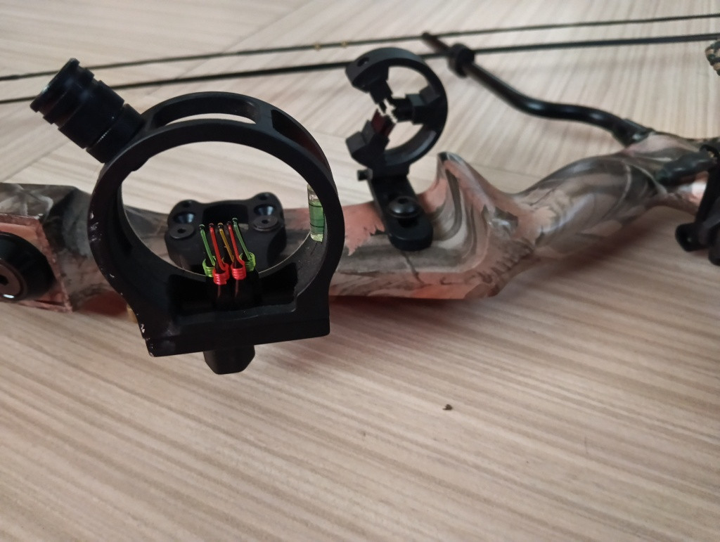 Nový kladkový luk s mířidly, 5 kompozitových šípů + použitý batoh , vše v maskování RealThree , cena za vše